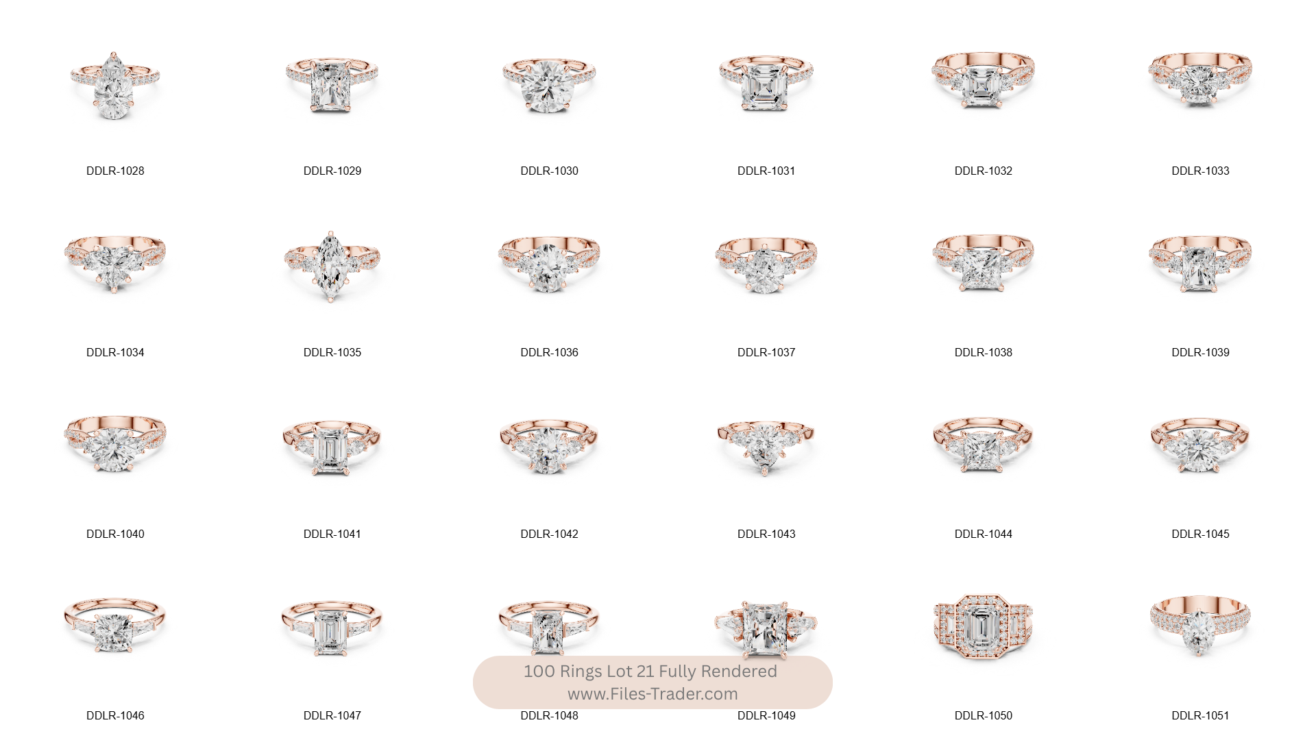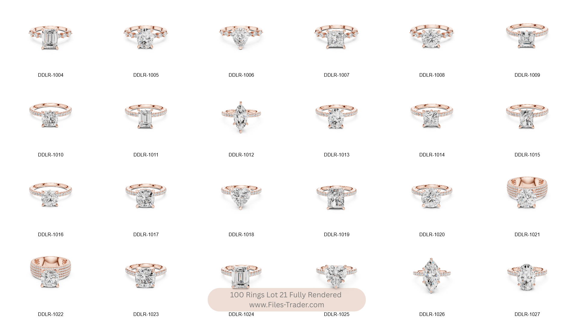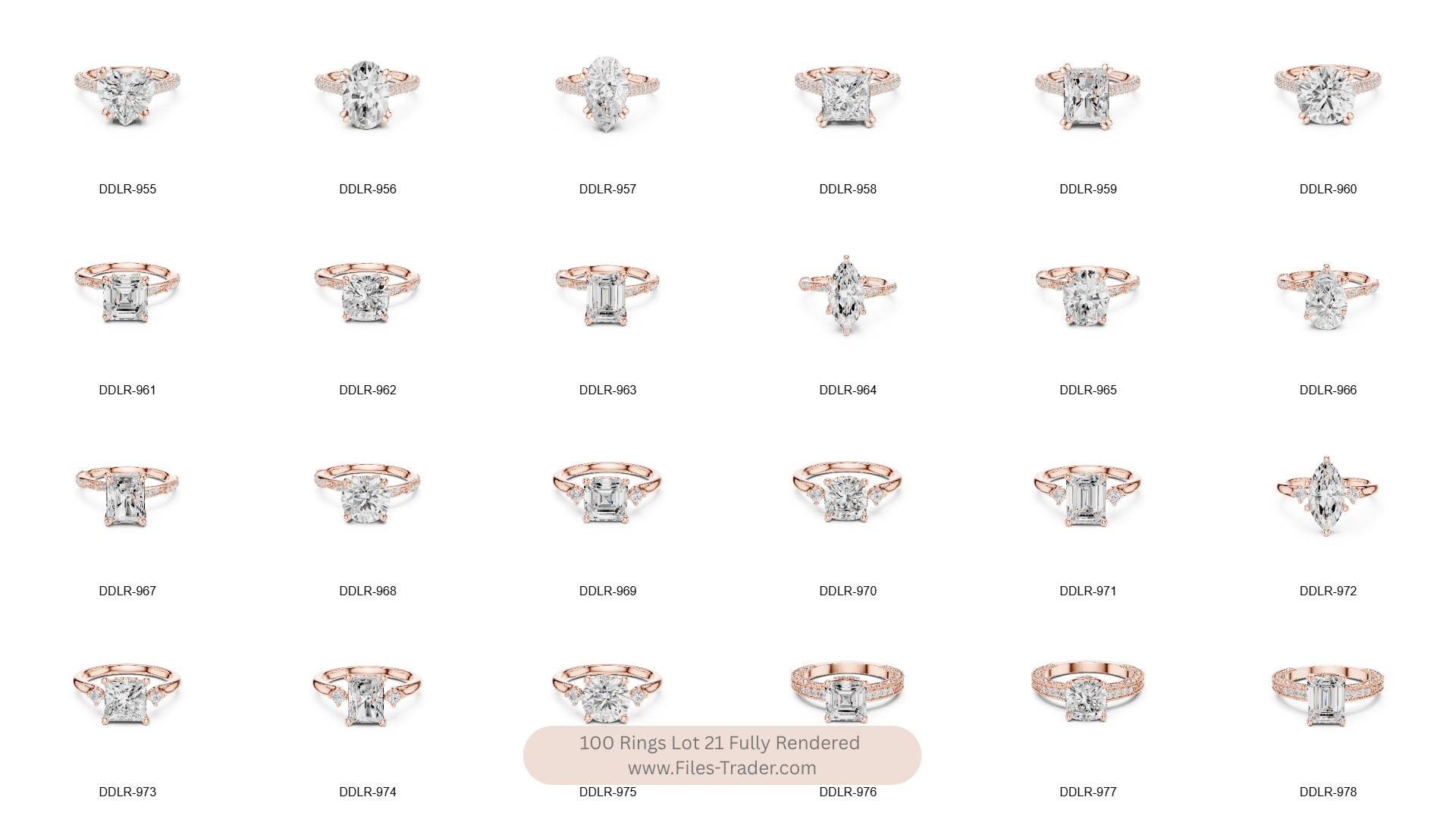 Its a Pack of 100 Rings Lot 21 Fully Rendered. 3dm and Stl files are availabe. Fully Rendered detail images and video are available. Free samples are upload on our website.