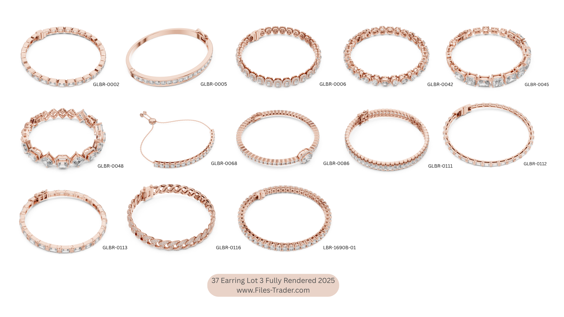 It’s a Pack of 13 bracelet Lot 3 Fully Rendered . 3dm and Stl files are available. Fully Rendered detail images and video are available. Free samples are uploaded on your website.