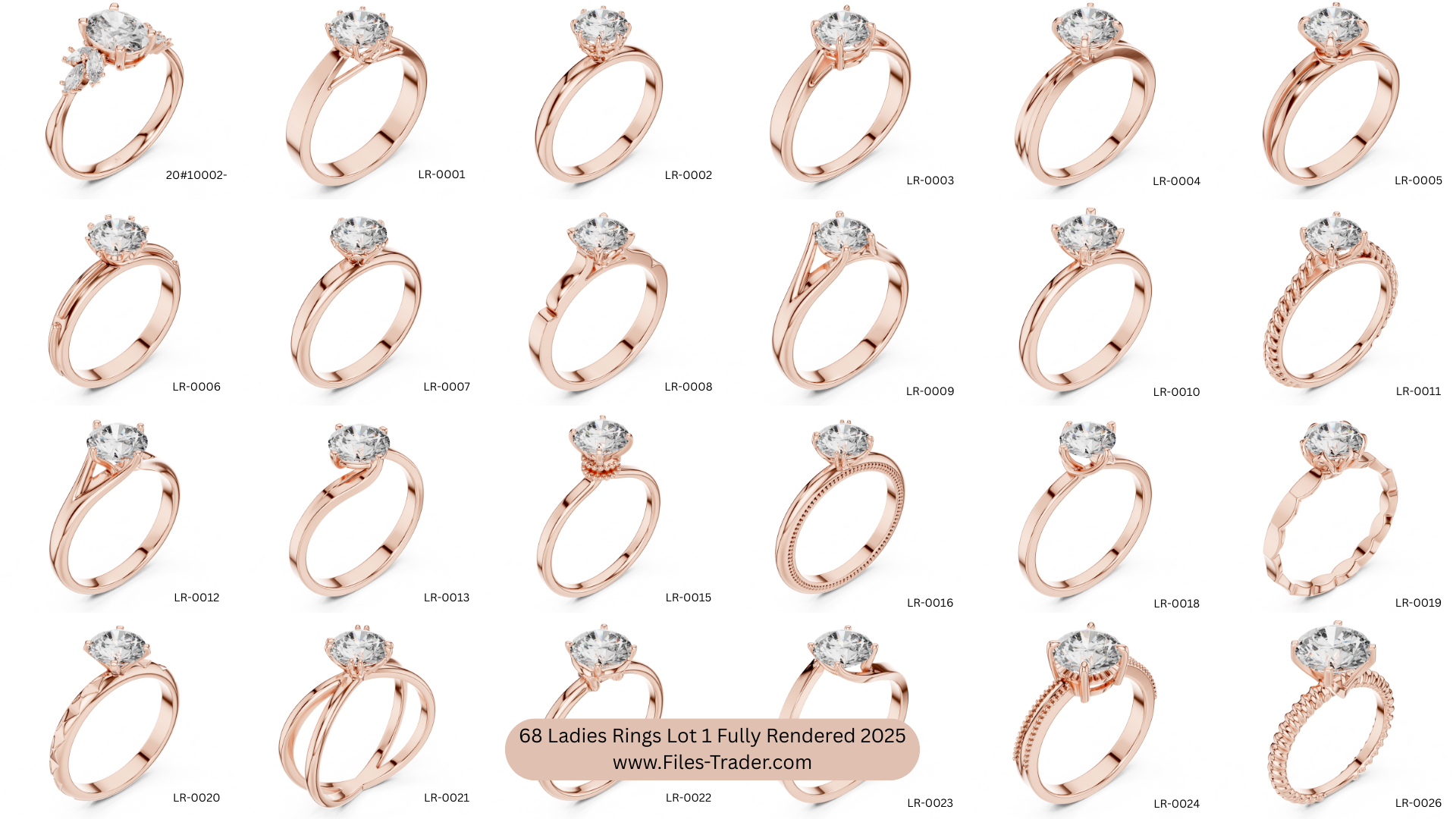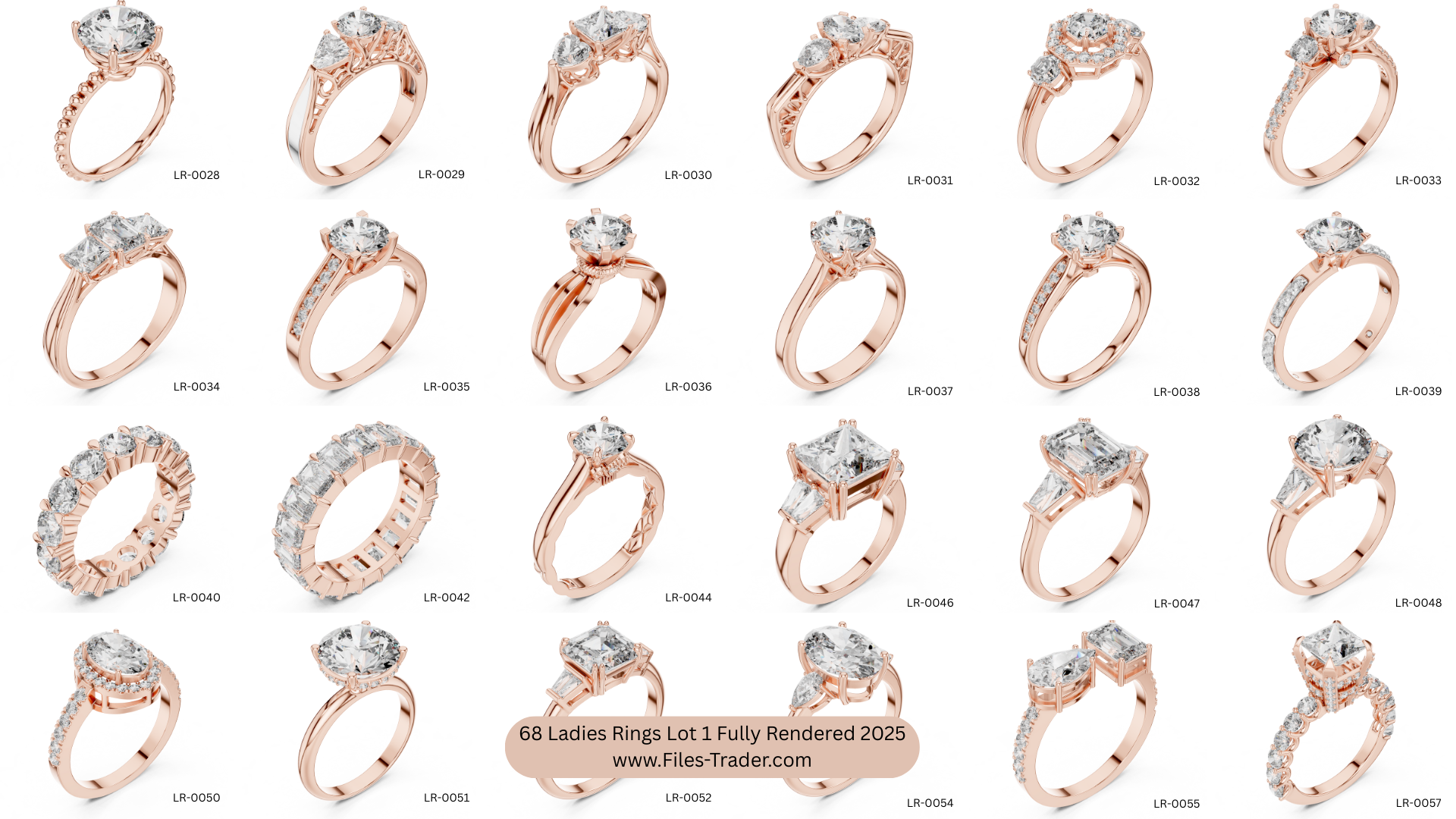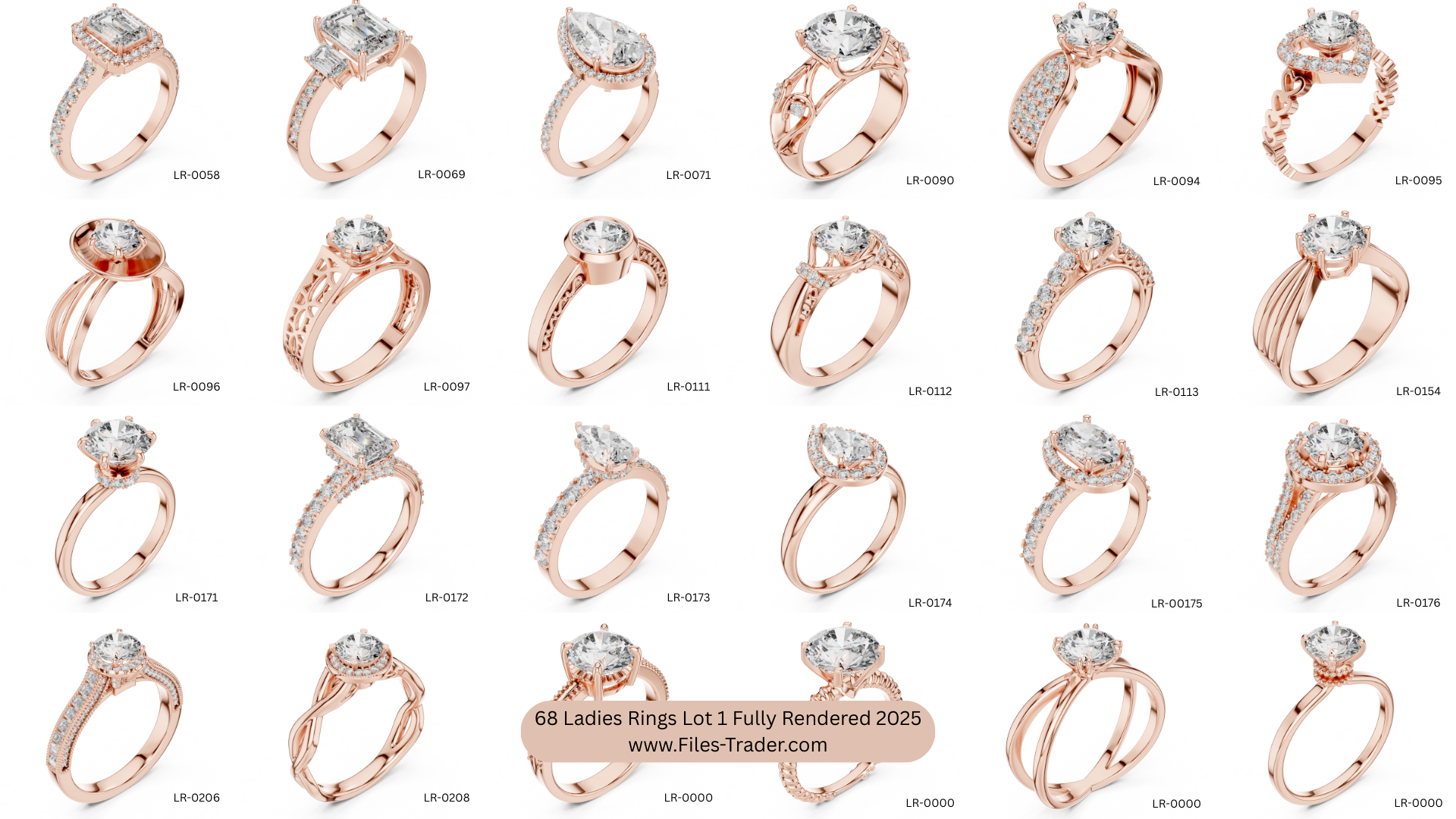 It’s a Pack of 68 Ladies Rings Lot 1 Fully Rendered 2025. 3dm and Stl files are available. Fully Rendered detail images and video are available. Free samples are uploaded on your website.